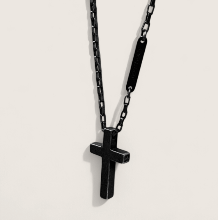 Temper your look with industrial elegance. The Crucible Cross Necklace pairs a precision-milled, 40 × 28 mm cross pendant with a substantial 28″ box chain—both forged from 316L stainless steel and finished in deep black titanium ion plating. A discreet Anvil&Ore tag near the clasp underscores its craftsmanship, while the hypoallergenic, nickel-free alloy stands up to daily wear without corroding or fading.