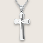 Crafted from premium 316L stainless steel, the Trinity Layered Cross features a three-tiered silhouette that adds depth and dimension to a timeless symbol. Each variant is offered on a sturdy 24″ curb chain:
