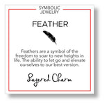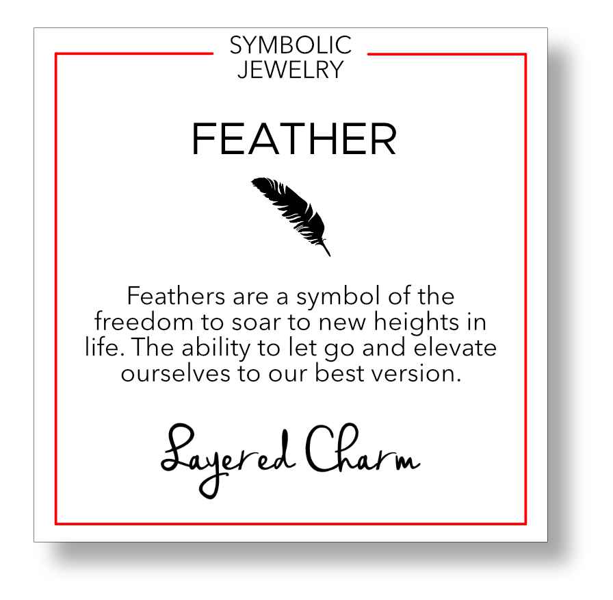 Sterling Silver with oxidized finish, leaf charm with 5x2mm hole. Approximate charm size: 23mm L x 5.5mm W x 1mm T. paired on a sterling silver rhodium treated chain. Feathers are a symbol of the freedom to soar to new heights in life. The ability to let go and elevate ourselves to our best version.