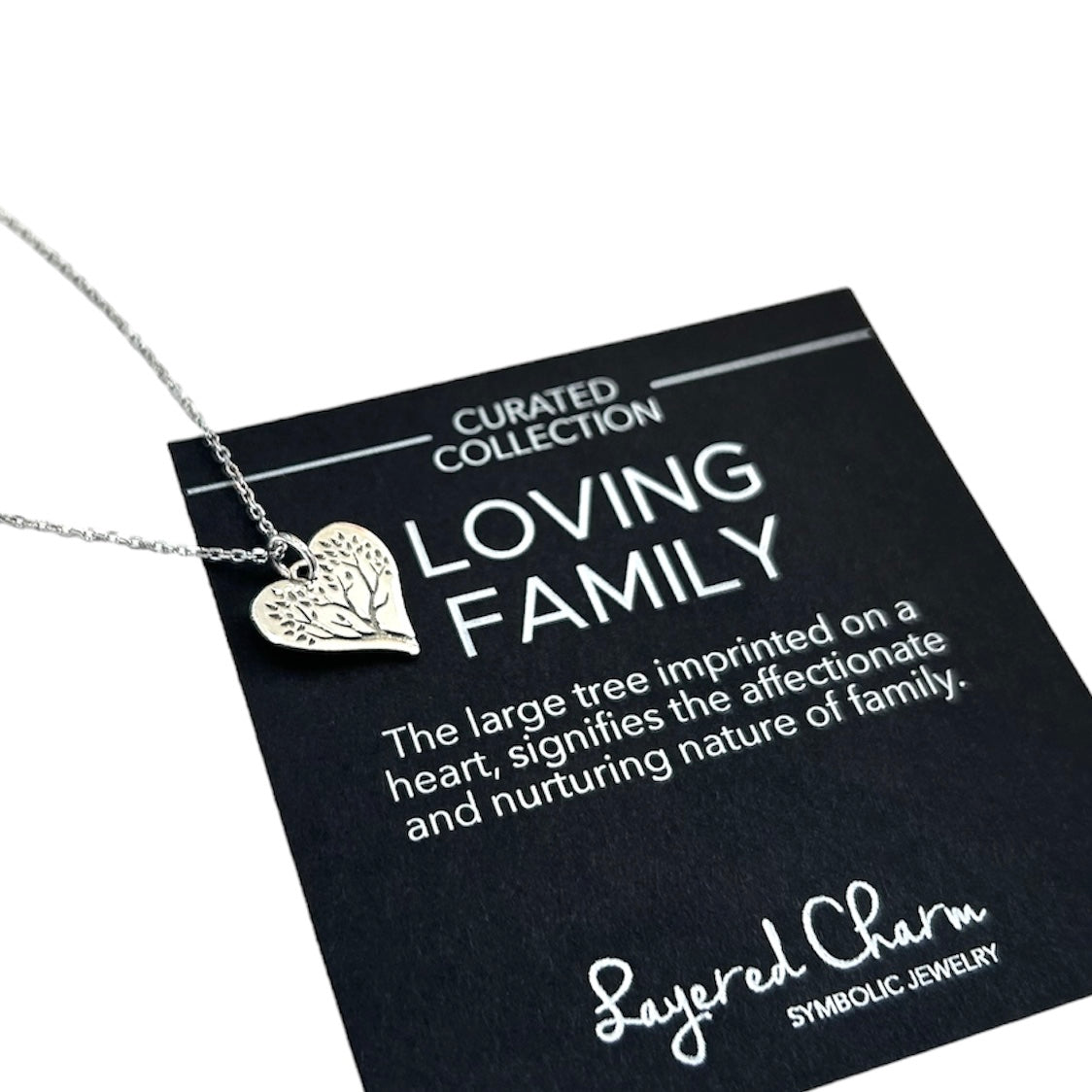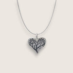 The pendant illustrates a large tree imprinted on a heart, signifying the affectionate and nurturing nature of family.