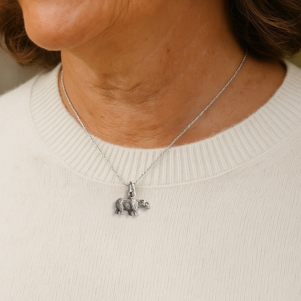 Small in size, bold in spirit. The Wildstride features a finely detailed 3D bear pendant—measuring 14x14mm—crafted in solid sterling silver. With lifelike texture and a confident stance, this miniature guardian channels the raw strength and grounded presence of the wild.