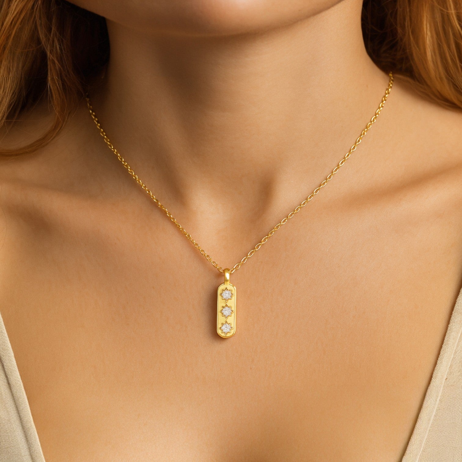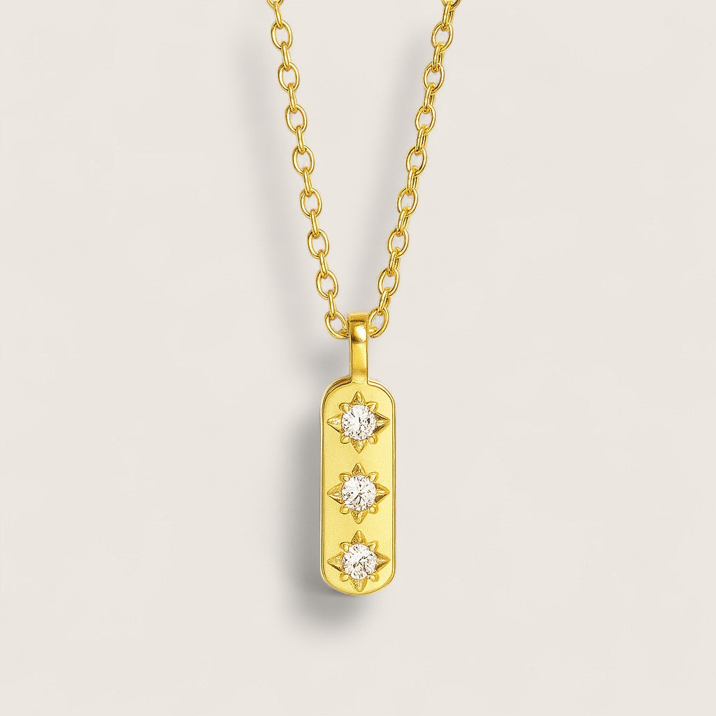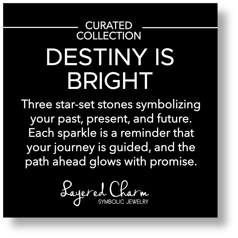 The future shines just as brightly as the stars above. The Destiny is Bright Necklace features three radiant star-set cubic zirconia stones symbolizing your past, present, and future. Each sparkle is a reminder that your journey is guided, and the path ahead glows with promise.
