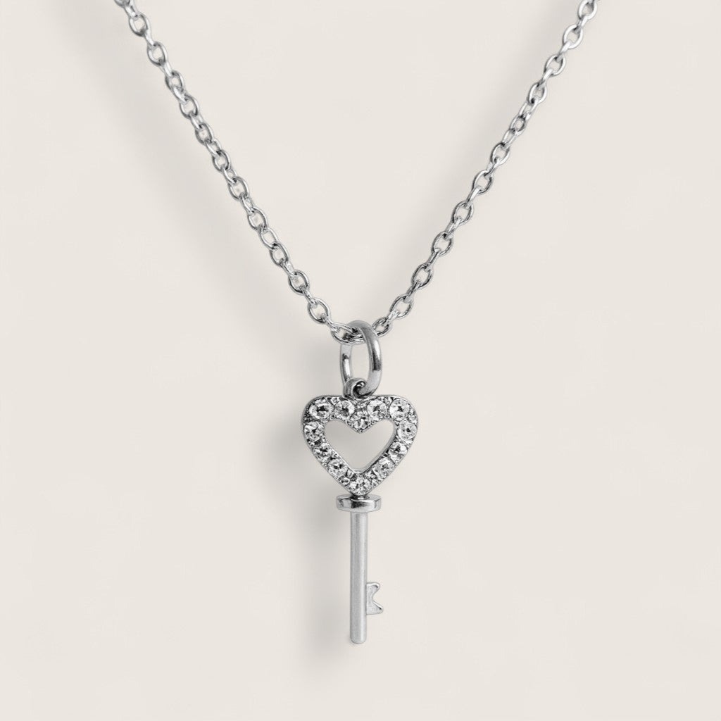 The Key to the Heart Necklace is a timeless symbol of love and connection. Featuring a delicate heart-shaped key adorned with sparkling CZ stones, it represents the special bond shared between hearts — one that unlocks warmth, trust, and devotion.