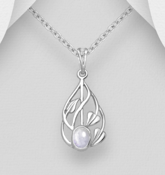 Sterling Silver frames this stone pendant. Colour and size may vary as they are genuine gemstones and hand finished. The gemstone pendant measures 30mm by 20mm in length and is paired with a sterling silver cable chain.