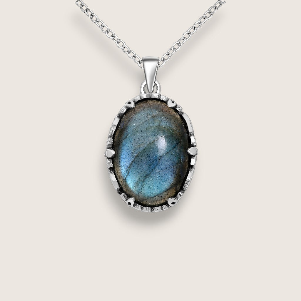 • Gemstone Options: Amethyst (deep purple), Labradorite (green iridescent glow), Moonstone (iridescent glow)