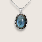 Embrace the beauty of Balinese craftsmanship with this intricately designed teardrop pendant, featuring your choice of amethyst, Labradorite, or moonstone. Handcrafted in solid sterling silver, the pendant showcases traditional Balinese-inspired detailing, adding a touch of artisanal elegance to any look.