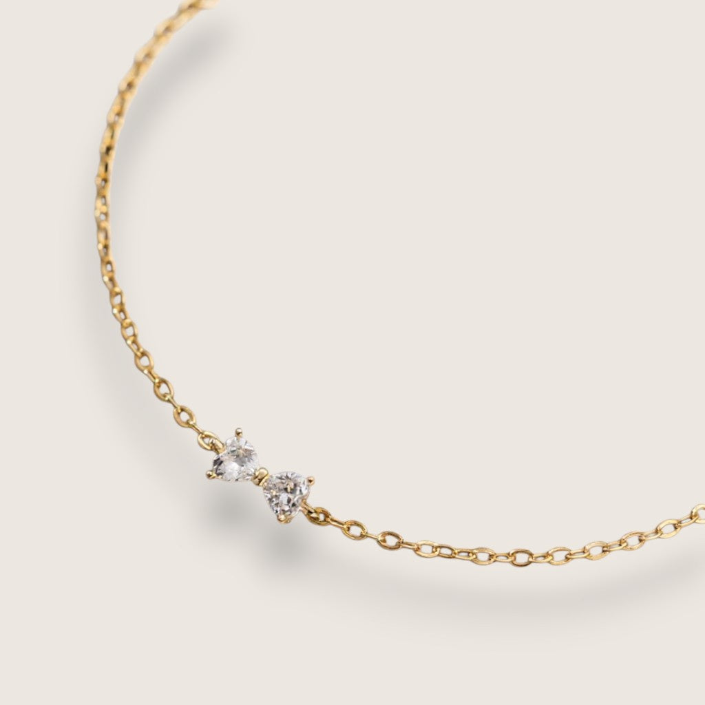 Delicate and timeless, the Eternal Duo Bracelet symbolizes two souls forever connected. Featuring a pair of sparkling CZ stones set side by side, it reflects harmony, balance, and the beauty of companionship — whether between partners, friends, or family.