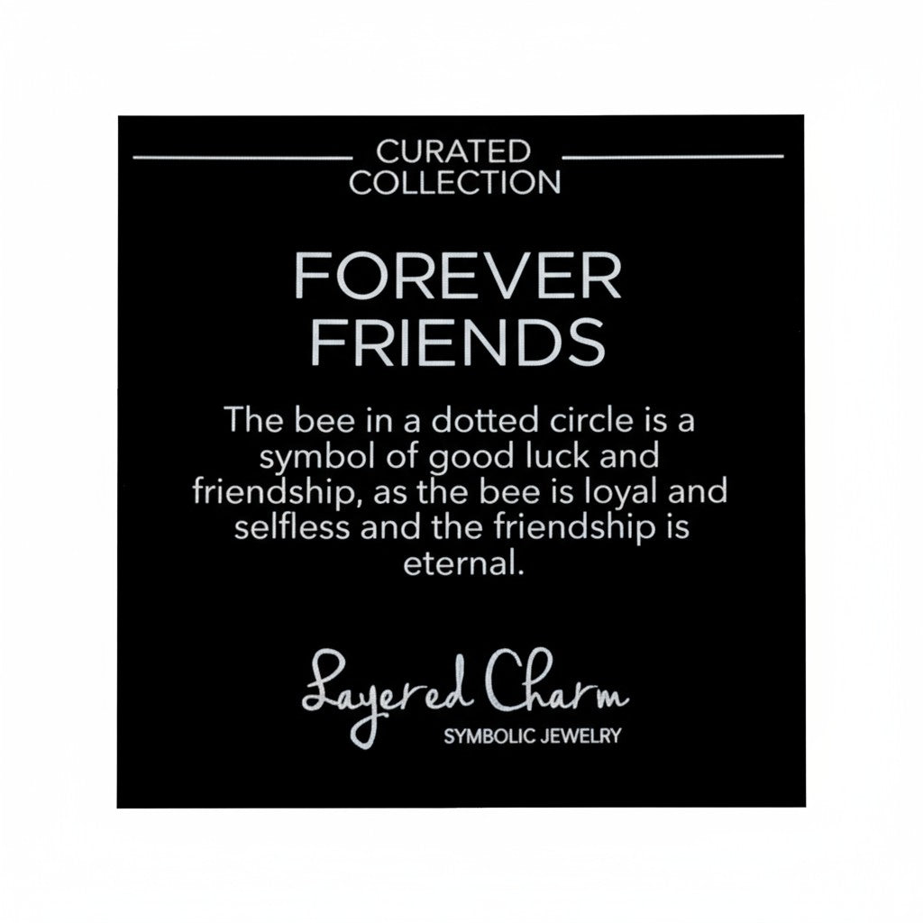 The bee in a dotted circle is a symbol of good luck and friendship, as the bee is loyal and selfless and the friendship is eternal.