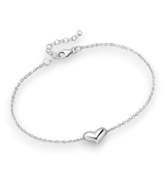 Add a charming touch of love to your wrist with this sterling silver puff heart chain bracelet. The delicate puff heart charm adds a playful, polished look, while the adjustable chain ensures a perfect fit.
