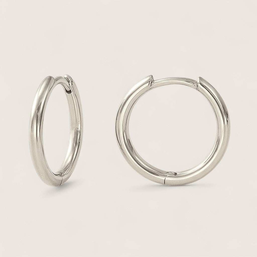 Minimal, timeless, and versatile—these sterling silver huggie hoops are a jewelry box essential. Crafted with a slim 1.5mm profile, they’re available in three diameters (9.5mm, 11.5mm, and 13.5mm) to suit any style. Finished in your choice of rhodium or gold plating, these hoops are perfect for stacking, layering, or wearing solo for a clean, understated look that never goes out of style.