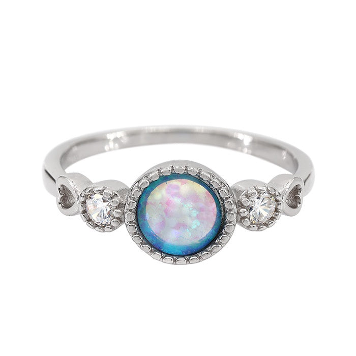 Sterling silver with rhodium, 6mm emulated opal ring with cubic zirconia, 2mm band