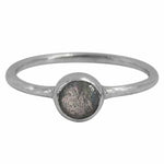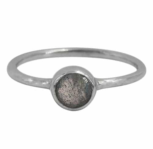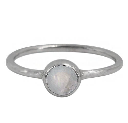 Sterling silver with rhodium plated stone ring, 6mm diameter(stone), 1.5mm(round band). Colour and size may vary.