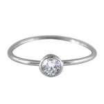 Rhodium plated on Sterling Silver, faceted round shape stone ring. Approx stone size: 5mm Diameter.
