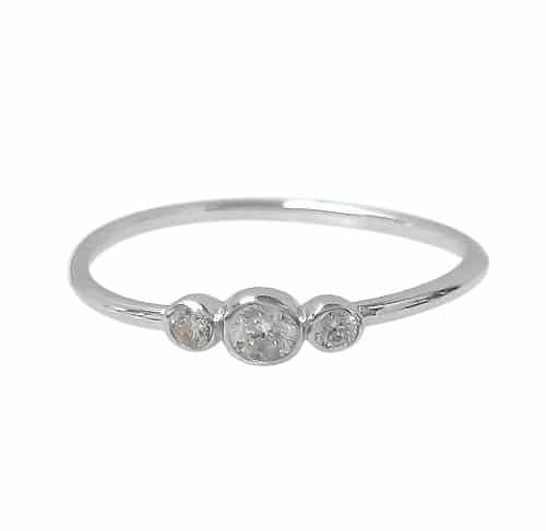 Sterling silver with rhodium, cubic zirconia trinity ring, 9x3mm width.