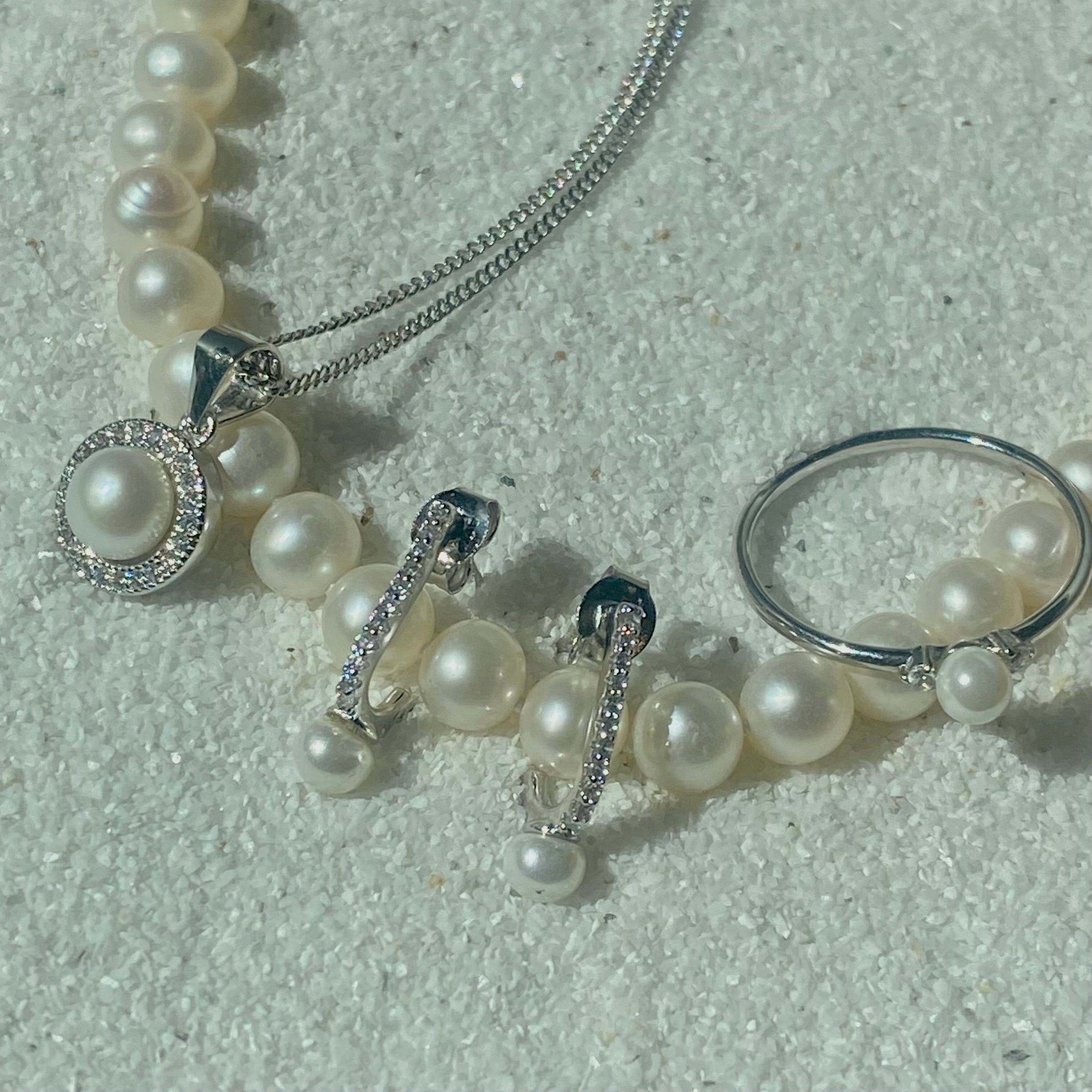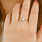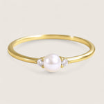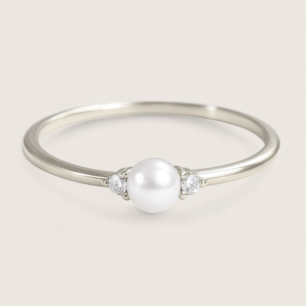 Delicate and timeless, The Aurelia ring blends classic elegance with a touch of sparkle. Crafted in sterling silver with your choice of gold or rhodium plating, it features a luminous 4mm pearl flanked by two brilliant 2mm cubic zirconia stones. A slender 1.5mm band completes the refined design, making it the perfect piece for stacking or wearing solo as a symbol of understated grace.