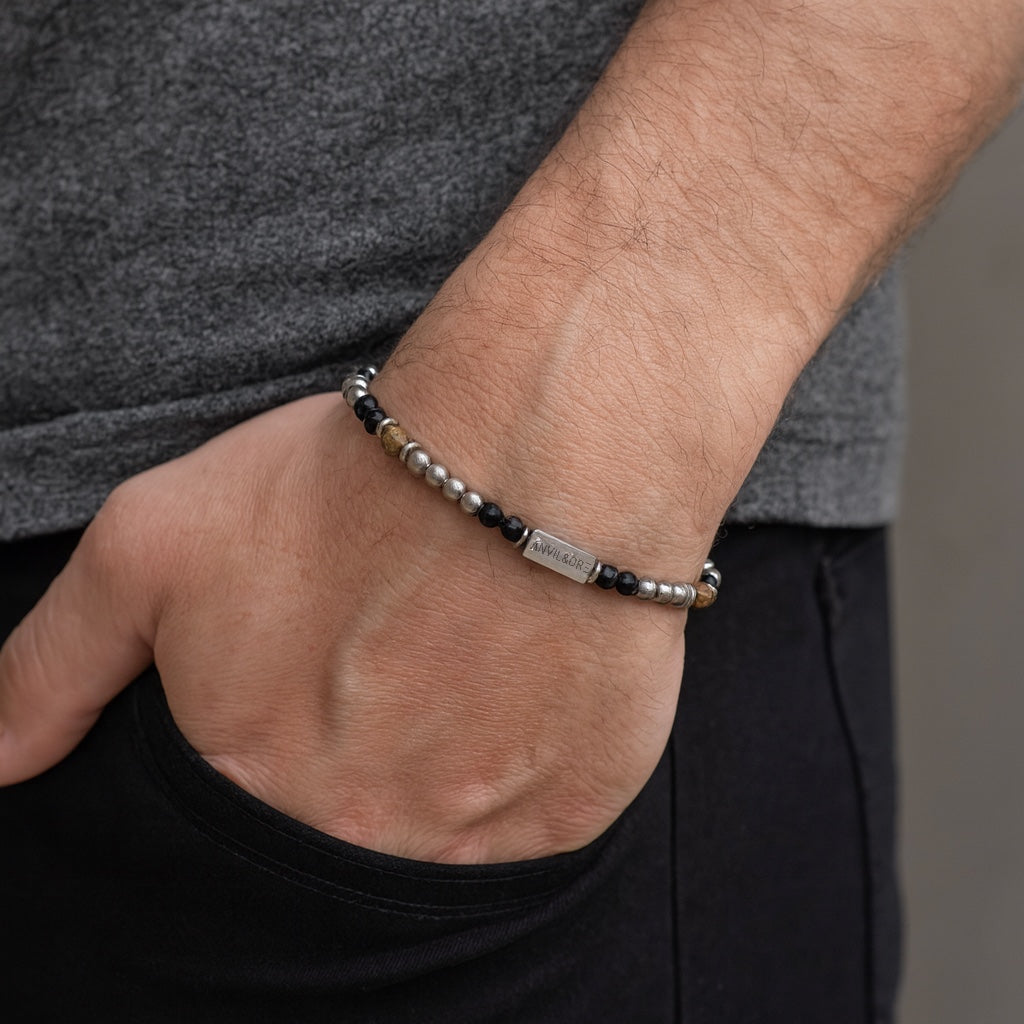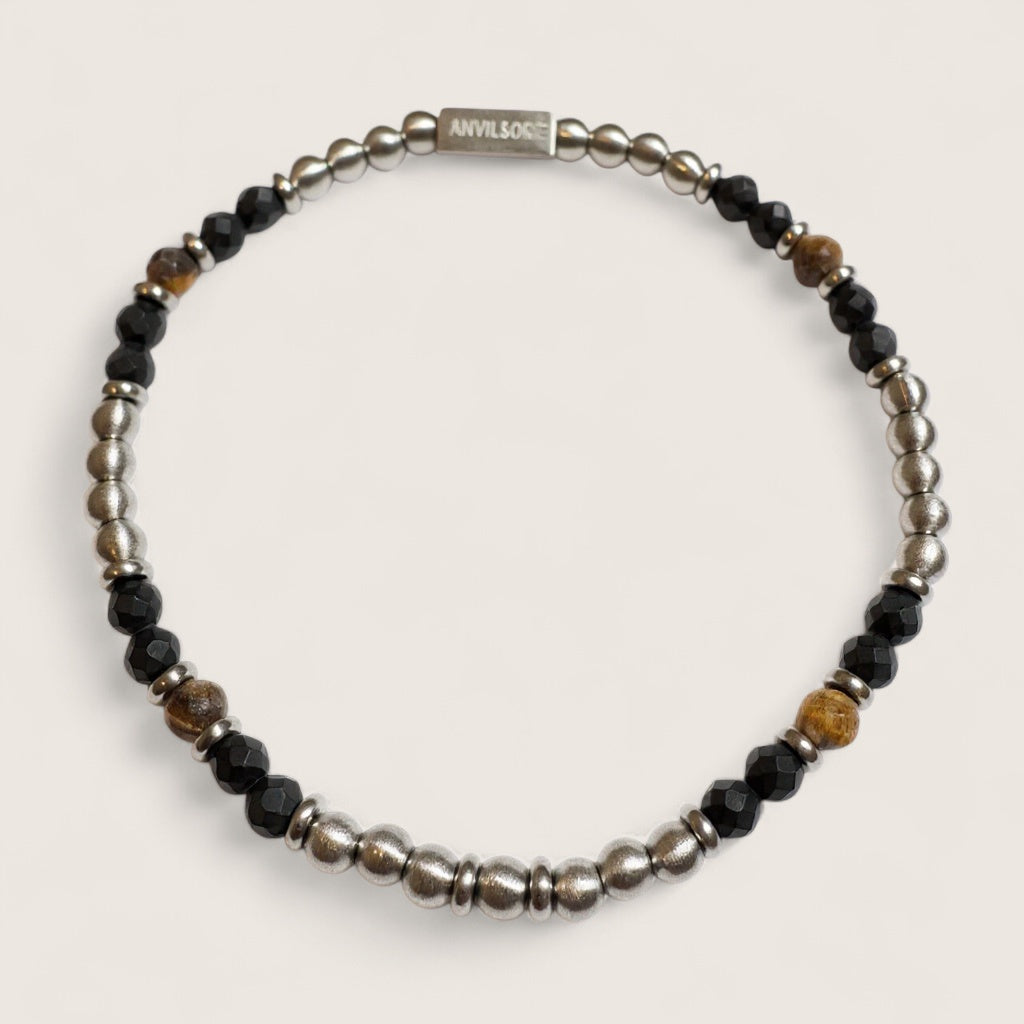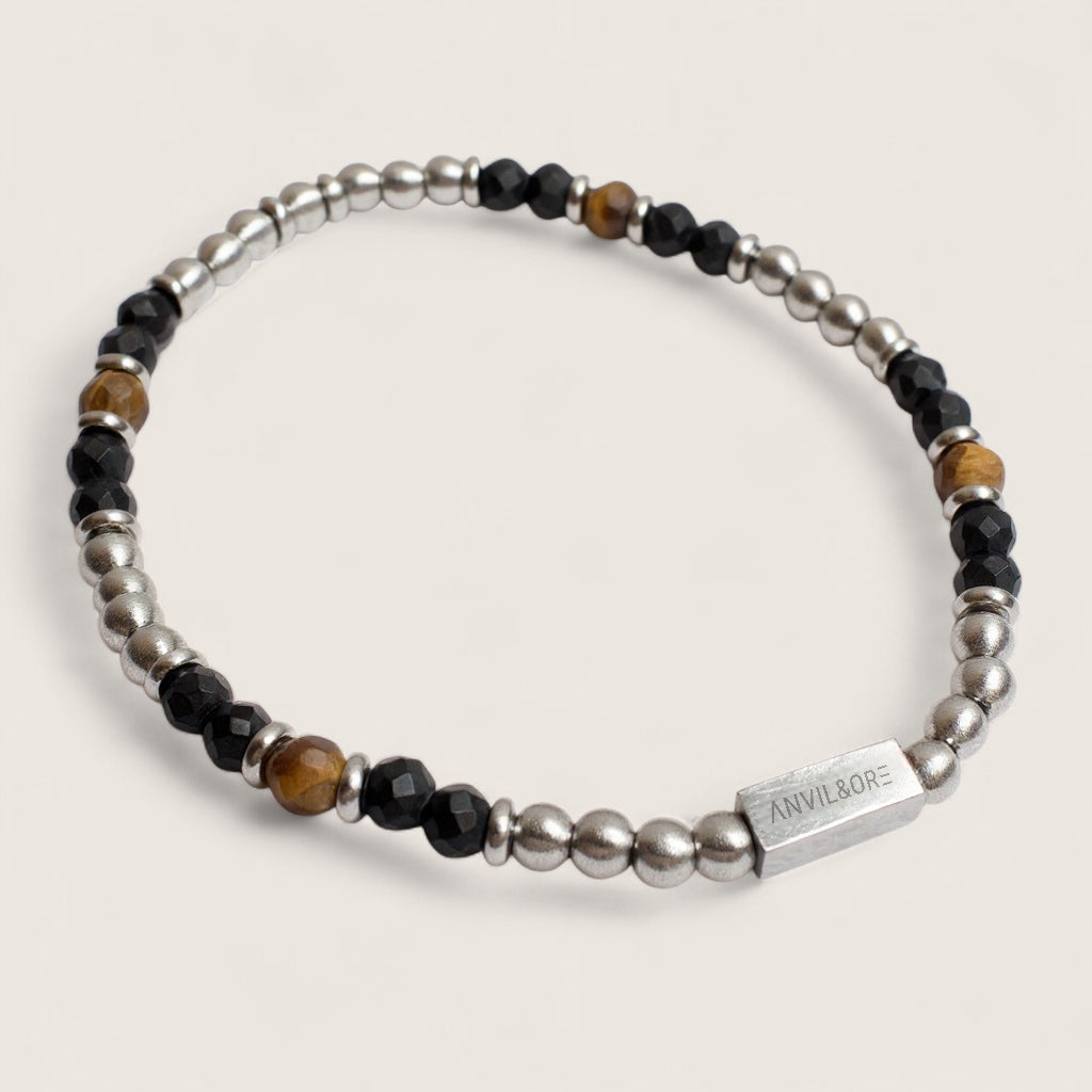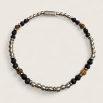 Rule your style with The Dominion. Crafted with precision 4mm matte beads, this bracelet fuses the grounding power of obsidian with the fearless energy of tiger eye, balanced by the industrial strength of stainless steel. Its stretch design ensures a comfortable fit, making it a versatile piece built for everyday wear.