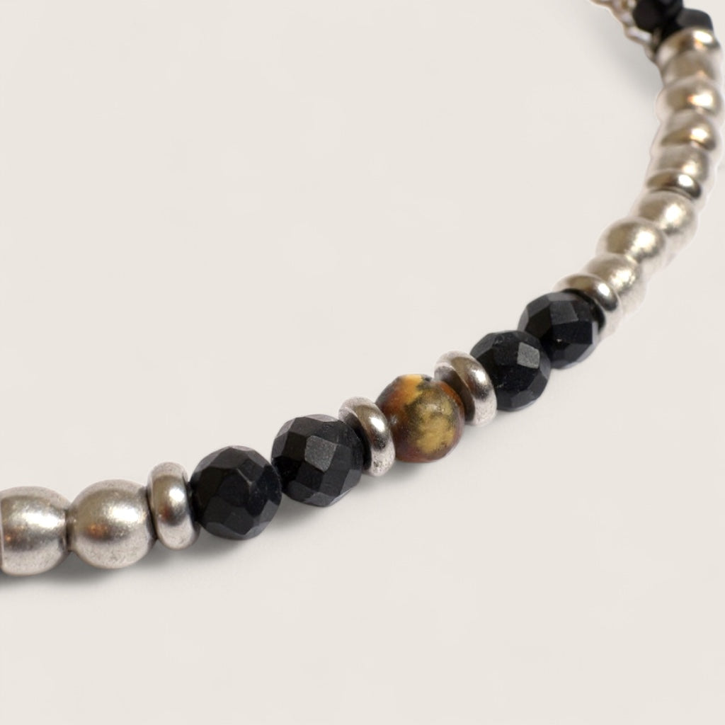 • Meaning: Obsidian for protection, Tiger Eye for courage, Steel for resilience