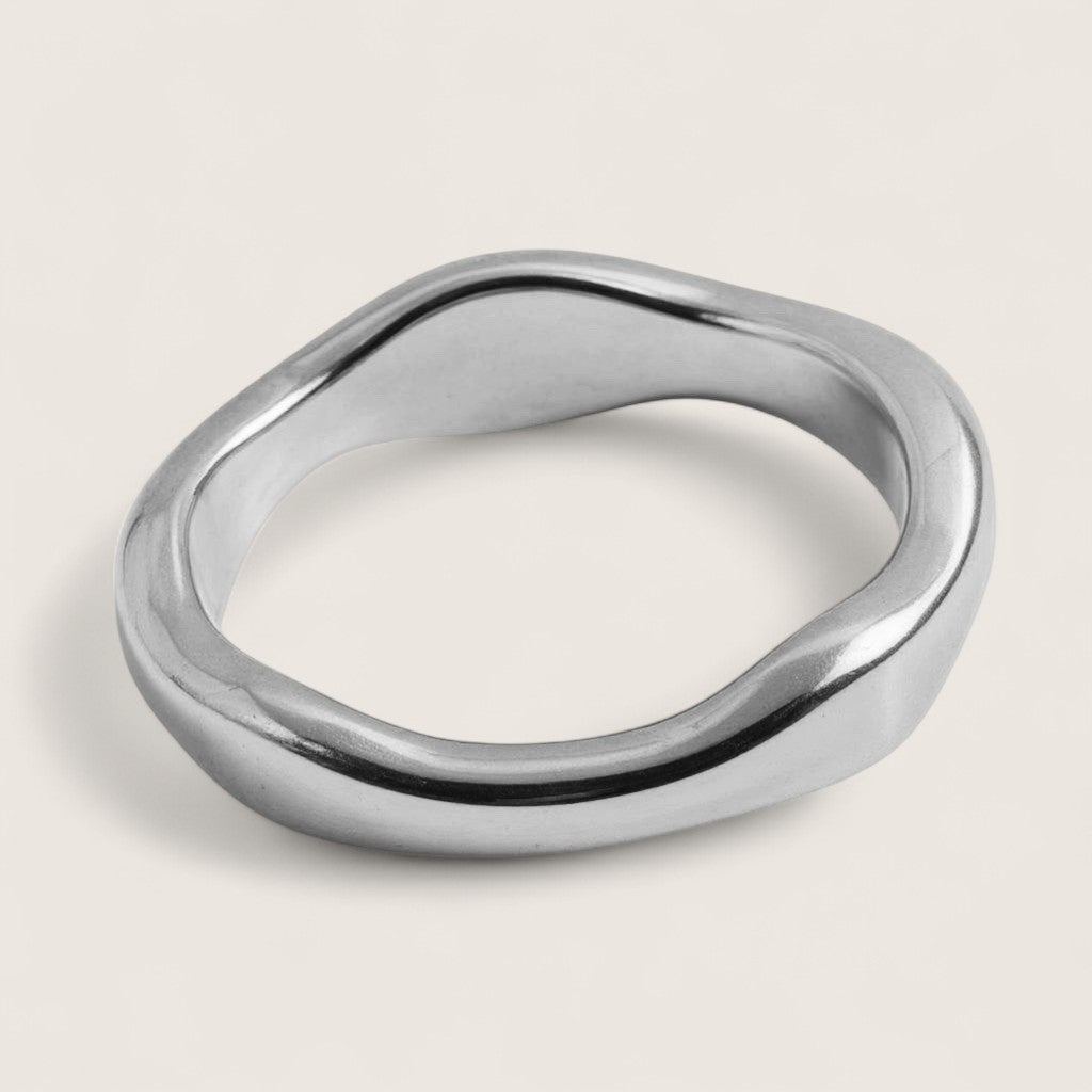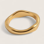 Sleek and sculptural, The Ripple Band is a modern take on minimal elegance. Crafted from gold-tone or stainless steel, its softly waved form offers a fluid silhouette that catches the light with every movement. Lightweight yet durable, this ring adds an organic edge to your everyday stack or makes a graceful solo statement.