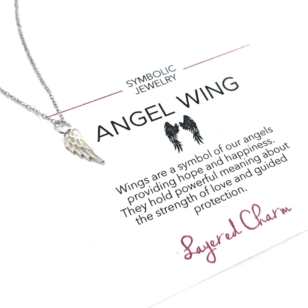 The tiny sterling silver angel wing pendant necklace makes a heartfelt gift. Wings are a symbol of our angels providing hope and happiness. They hold powerful meaning about the strength of love and guided protection.