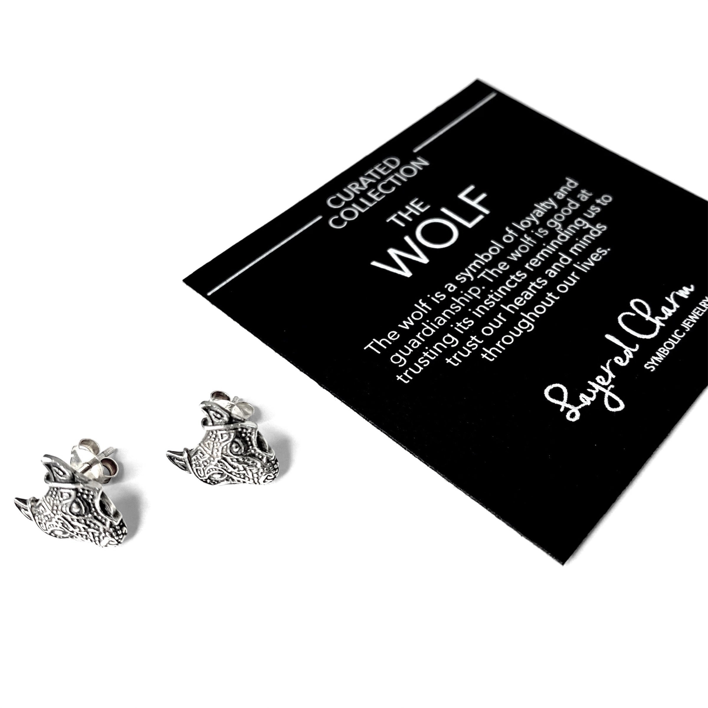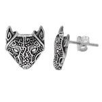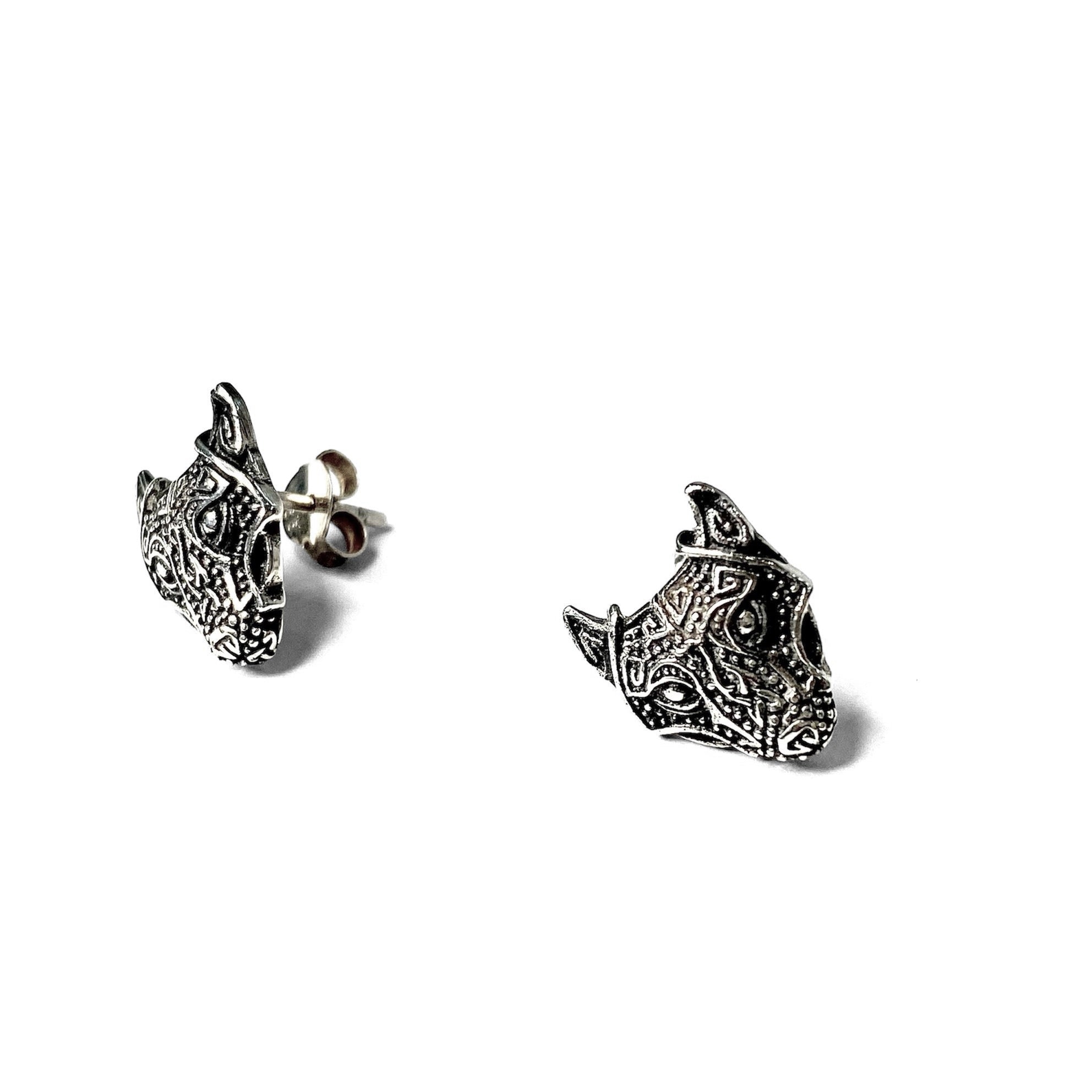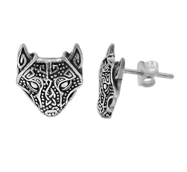 Sterling silver, 13x10mm Norse wolf's head stud earrings