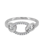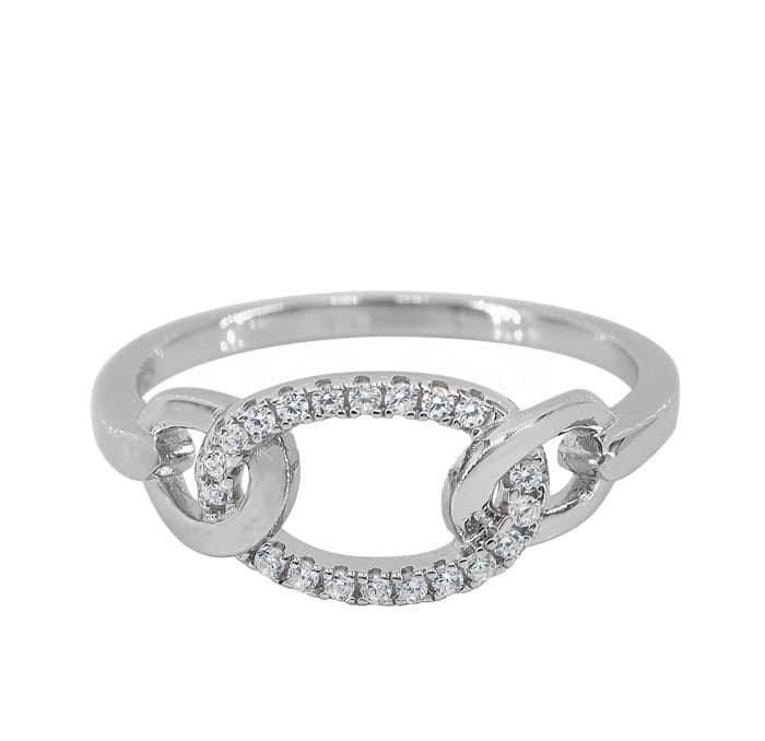 Sterling silver with rhodium, 8mm oval link ring with cubic zirconia
