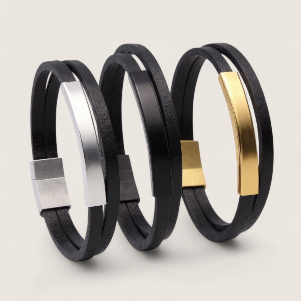 Crafted for the man who values subtle distinction, this bracelet’s magnetic clasp ensures a secure and comfortable fit. Available in Silver, Black, or Gold, The Bastion transitions effortlessly from casual wear to elevated style.