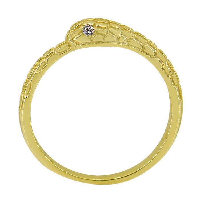 Sterling silver with gold, 4mm snake ring with cubic zirconia