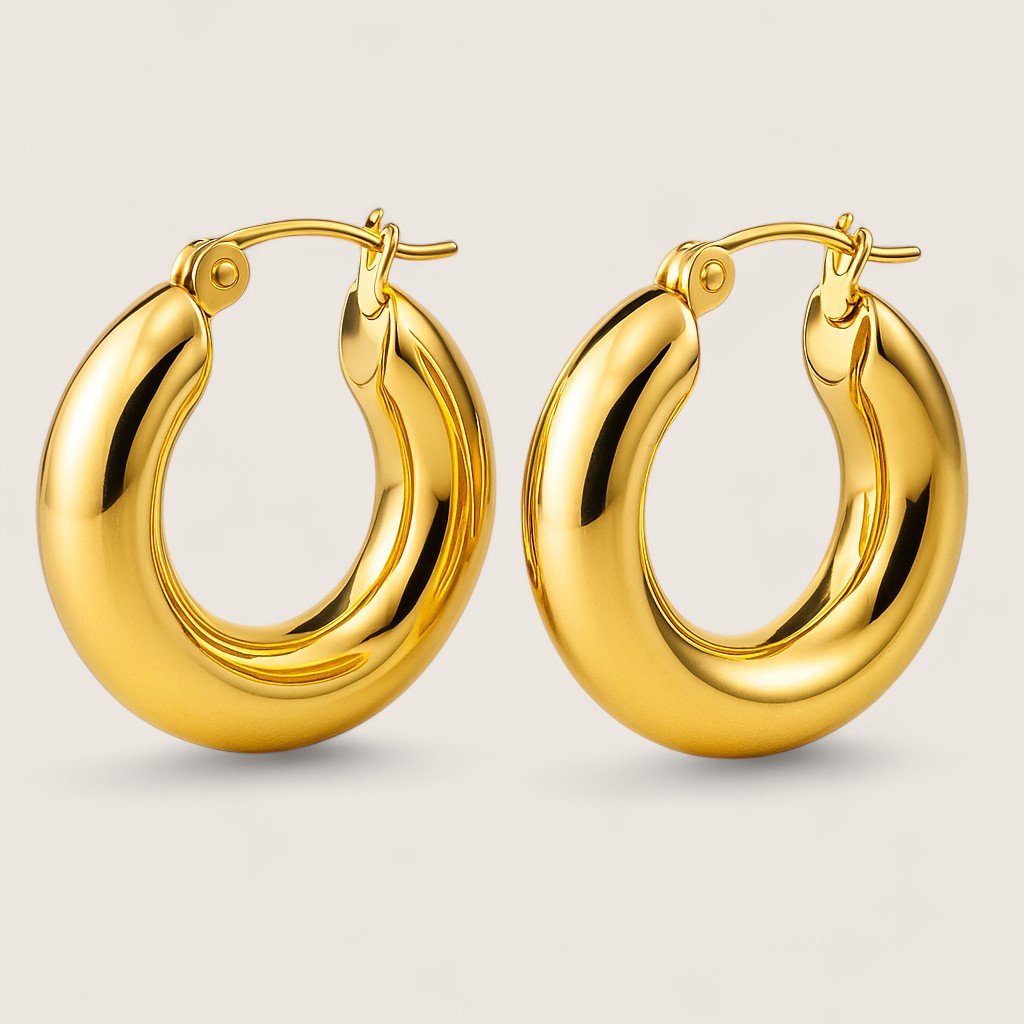 The Bold Aura Earrings bring modern edge to a timeless classic. Crafted in stainless steel, these chunky hoops feature a smooth polished finish that makes a statement without saying a word. Available in 20mm or 25mm diameter, they strike the perfect balance between everyday wear and bold style.