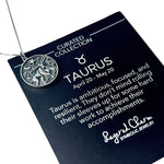 Celebrate the steadfast Taurus with this coin old-world astrological zodiac necklace showcasing the spirited Bull.  The reverse side denotes Taurus' ruling planet: Venus.