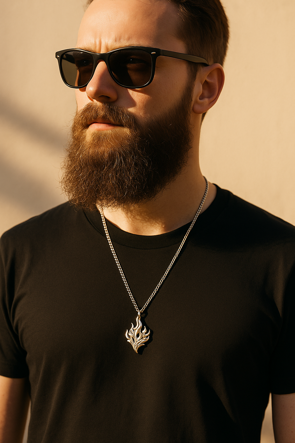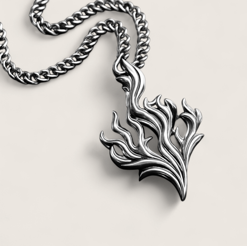 Channel the primal energy of the forge with The Hearthfire Pendant. Meticulously cast from polished 316L stainless steel, its sculpted flame motif catches the light at every angle, while the adjustable 24″ curb chain (with lobster-claw clasp) ensures a perfect fit. Inspired by the transformative power of fire, this rugged-yet-refined necklace symbolizes resilience and passion—wear it solo for a bold statement or layered with your favorite chains for an edge that refuses to cool.